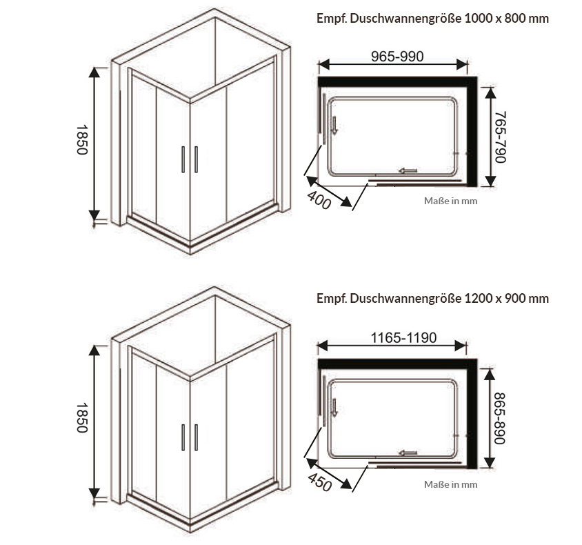 Duschkabine Eckeinstieg 120x90 Duschabtrennung 120x90 Runddusche