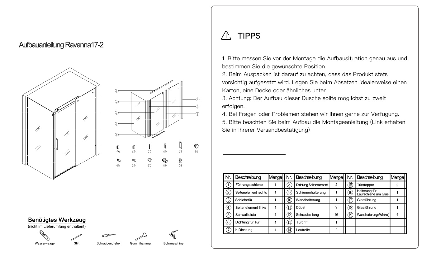 Design Duschabtrennung Ravenna17 8mm Esg Sicherheitsglas Klarglas