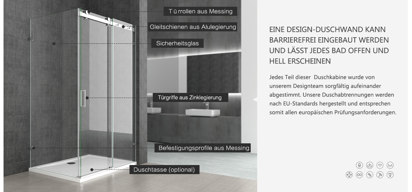 Echt Glas Dusche Duschabtrennung Duschkabine Rahmenlos